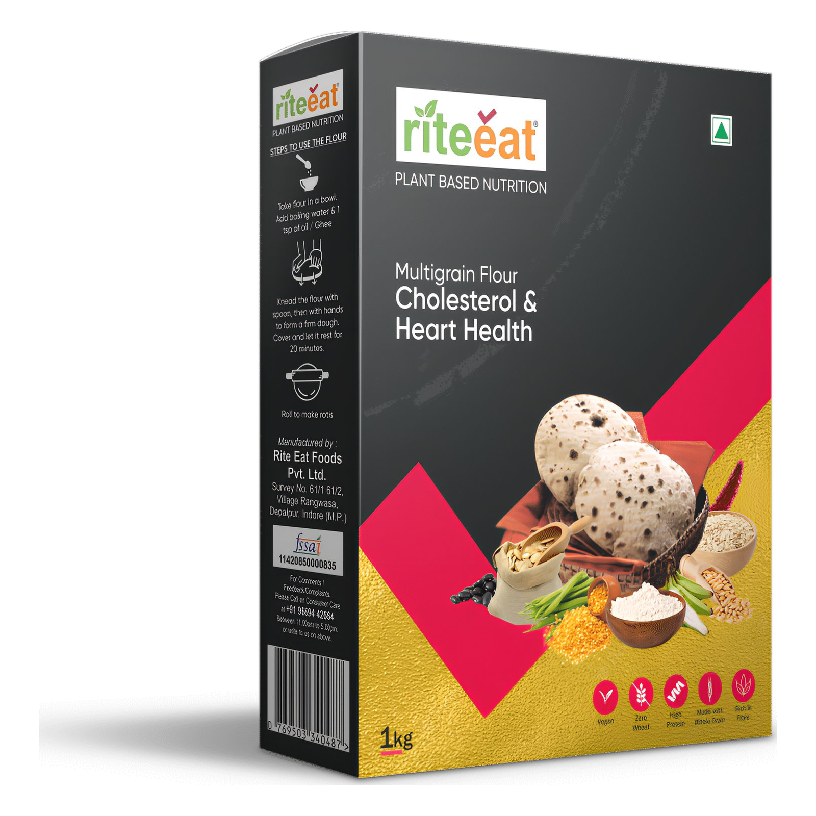 RiteEat Multigrain Flour – Cholesterol & Heart Health is a carefully balanced blend of whole grains and natural ingredients formulated to keep your heart in top shape. With high dietary fibre, plant-based proteins, and essential minerals, it’s an everyday choice for families focused on wellness.Key Highlights: