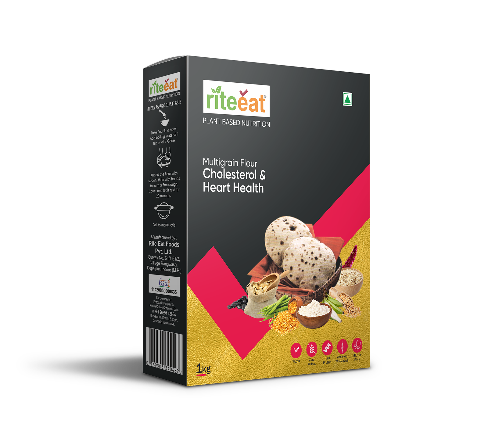 RiteEat Multigrain Flour – Cholesterol & Heart Health is a carefully balanced blend of whole grains and natural ingredients formulated to keep your heart in top shape. With high dietary fibre, plant-based proteins, and essential minerals, it’s an everyday choice for families focused on wellness.Key Highlights: