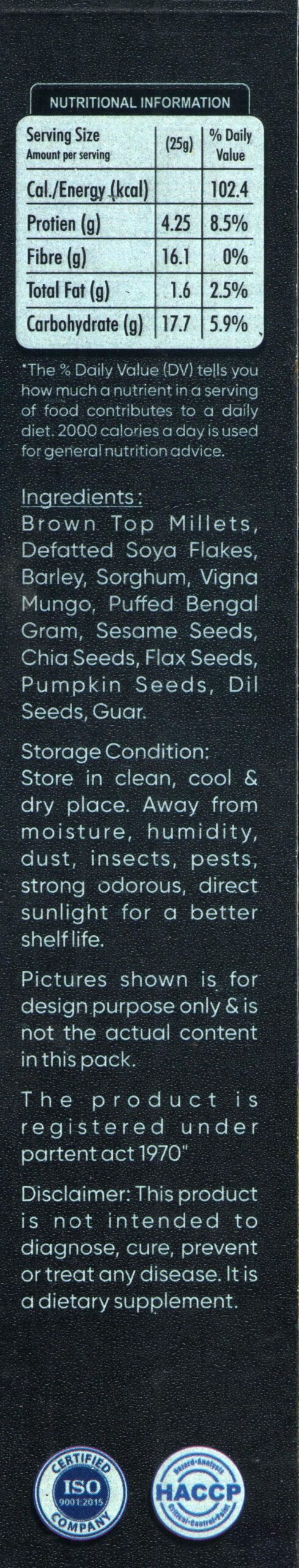 A wholesome blend of millet flours, natural grains rich in skin/hair-beneficial nutrients, and antioxidant-rich seeds. (If you have the exact list, you can list: e.g. ragi, foxtail millet, flaxseed, etc.)Storage